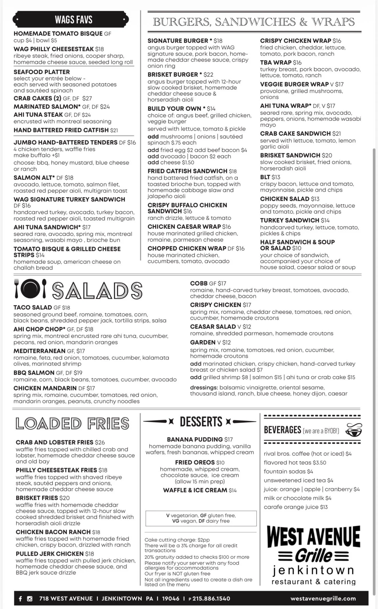 West Avenue Grille Restaurant Menu